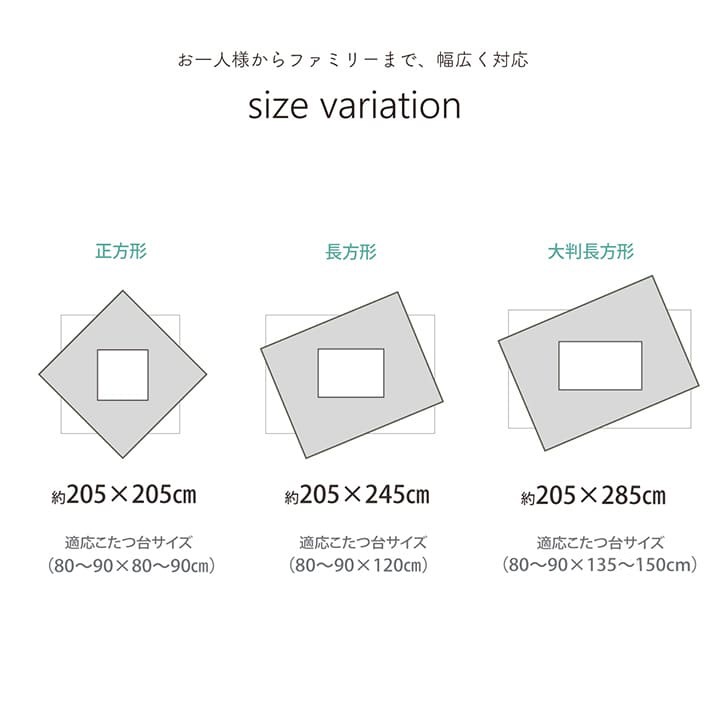 | サイズ | 約205×205cm/約205×245cm/約205×285cm |