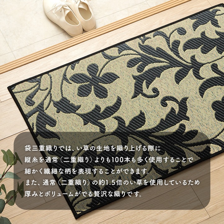 | 組成 | 表地=い草 ※袋三重織 裏地=ウレタンフォーム6mm ヘリ=綿100% |