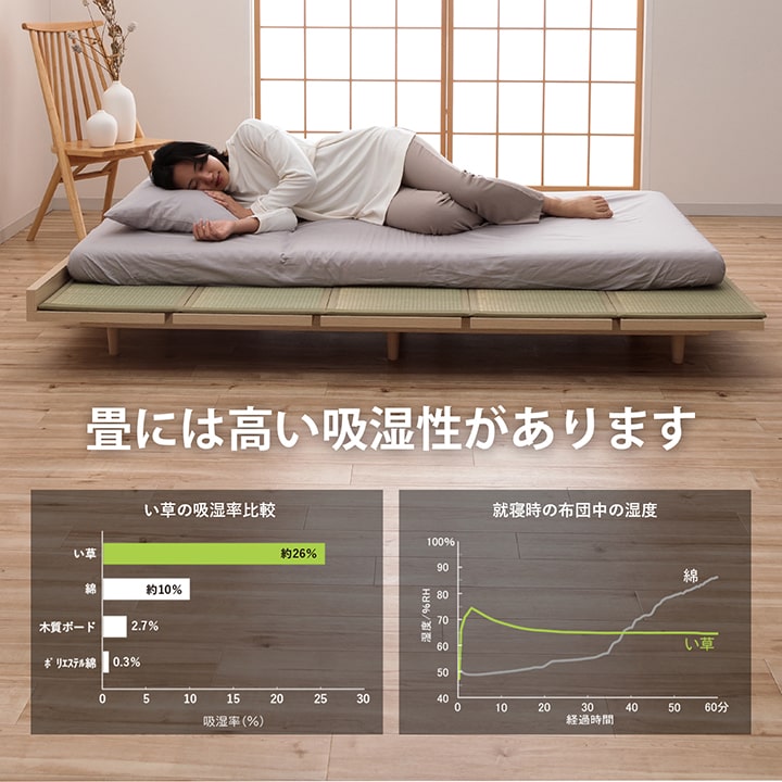 | サイズ | ベッド:120×204.5×23.9cm 夢見畳シングル:100×210cm 夢見畳セミダブル:120×210cm |