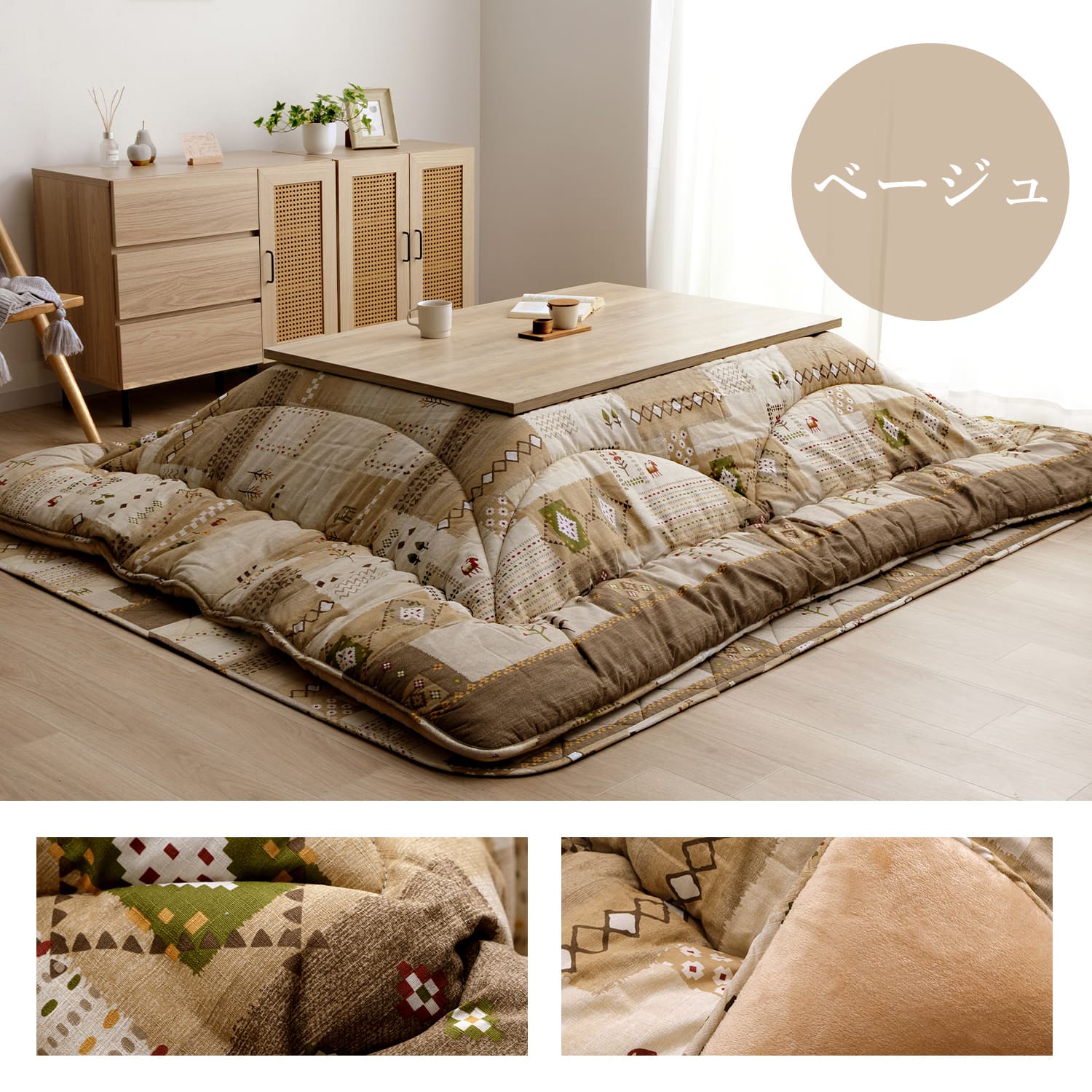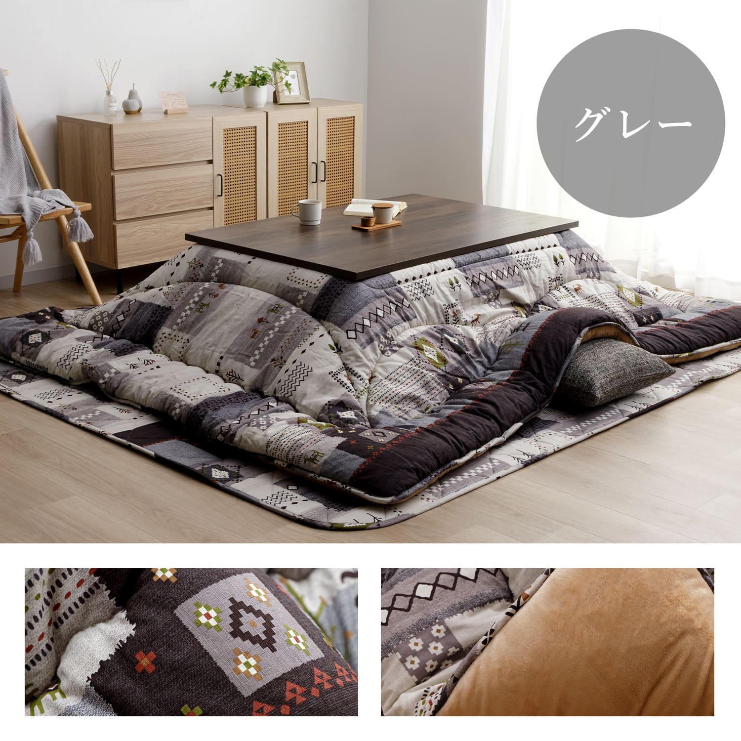 ■ 人気のギャベ柄をモチーフにした、北欧テイストのおしゃれなこたつ布団です。国内の工場で、生地の生産から綿入れ加工まで丁寧に生産しています。 ■ 表地は綿100%使用。ポリエステルなどの化学繊維と比べて静電気が起きにくく、優しい風合いです。 ■ 裏地はあたたかくやわらかなフランネル生地。しっとりとした肌触りで、触れたときのひんやり感を軽減します。 ■ 中綿は東レ マッシュロン綿を使用し、ボリュームたっぷりでふっくら。しっかりと温かさを保ちます。 ※ こたつ台、敷布団は別売りです。 ※ ふとんをやぐらの中に押し込んだり、座イスやイス全体をこたつの中に入れたまま使用しないでください。 ※ふとんがヒーターに当たらないようにご使用ください。(火災の原因になります) ※ご使用により、ふとんが焦げた場合につきましては、返品・交換を承ることができませんので、あらかじめご了承ください。 ※ 掲載写真は表記サイズと異なる場合がございます。 ※ 画面上のカラーはご使用ブラウザやモニターの設定により、実物とは若干異なる場合がございます。あらかじめご了承の上、ご注文をお願いいたします。 |