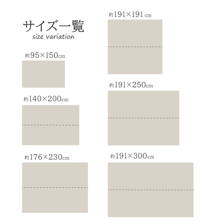 | サイズ | 約140×200cm/176×230cm/191×191cm/191×250cm/191×300cm |