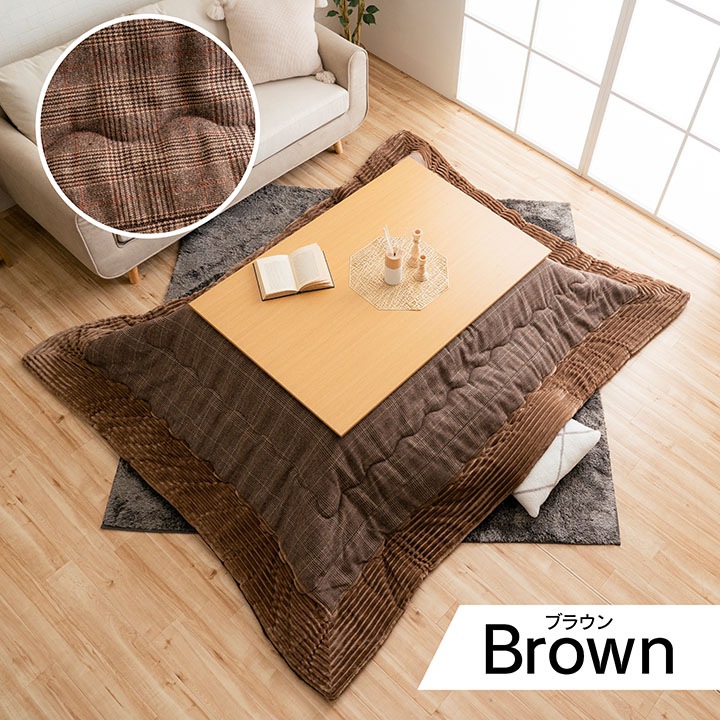 | 備考 | ■ おしゃれなチェック柄のこたつ掛け布団で、2色からお選びいただけます。 ■ 表地は先染めツイード生地を使用しており、おしゃれで落ち着いた雰囲気の空間へ。 ■ 裏地には柔らかく、肌触りの良いフランネル生地を使用してます。毛足が短いのでゴミや埃が絡みにくいという特長もあります。 こたつの特徴として、 1.省エネルギー こたつは必要なところだけを暖める省エネルギー暖房器具です。 2.クリーン こたつは二酸化炭素など有害物質を出さないのでクリーンです。 3.団らんの場 家族や友達が一緒にくつろげる空間、心もポッカポカになります。 |