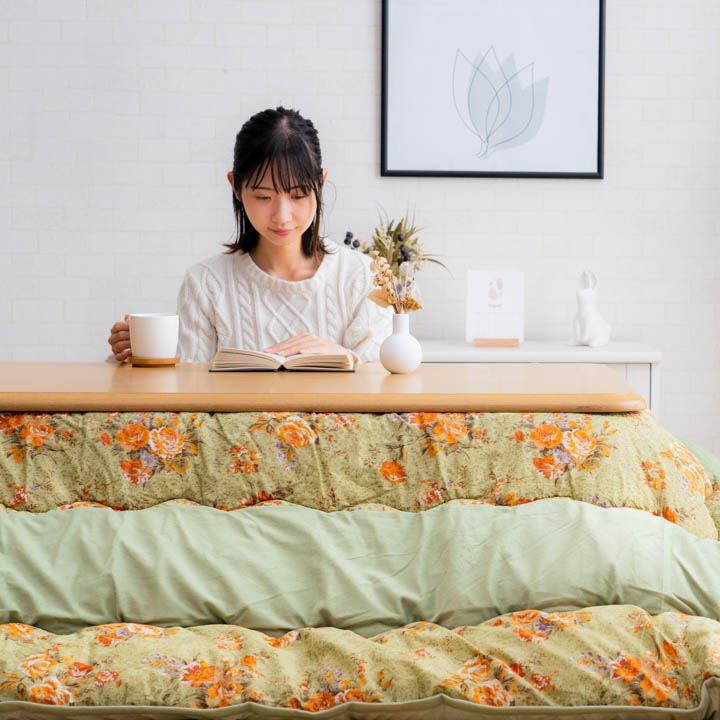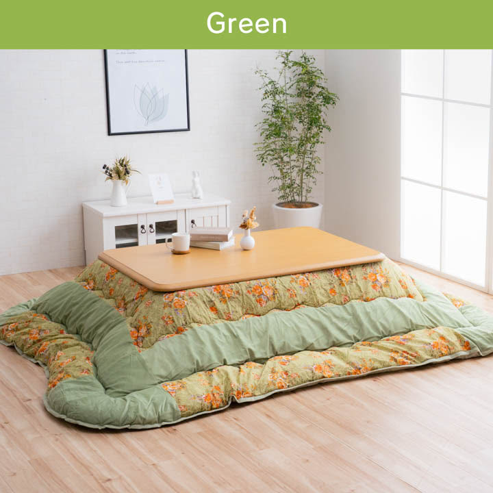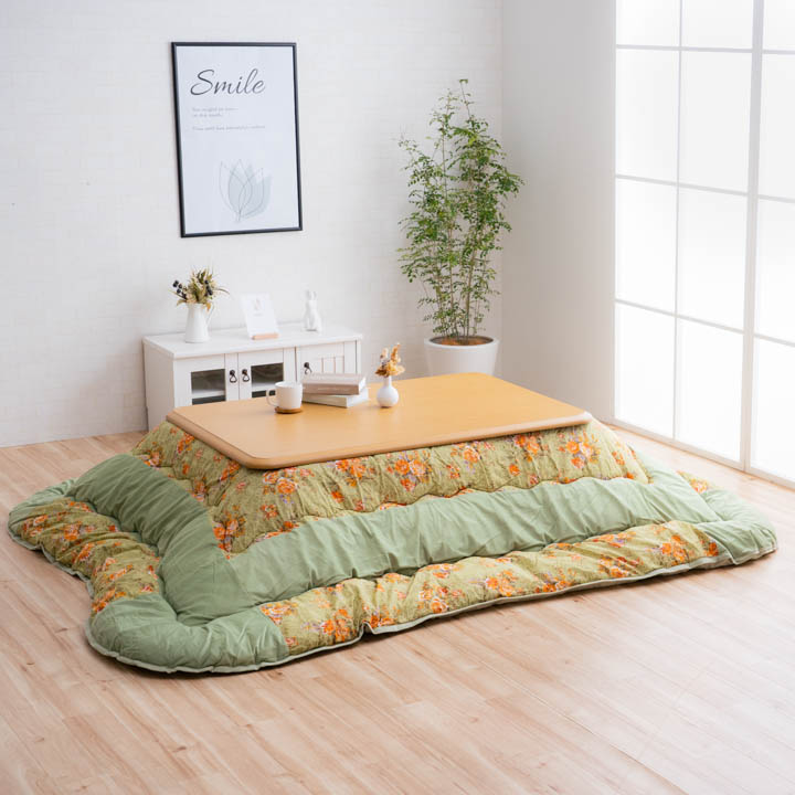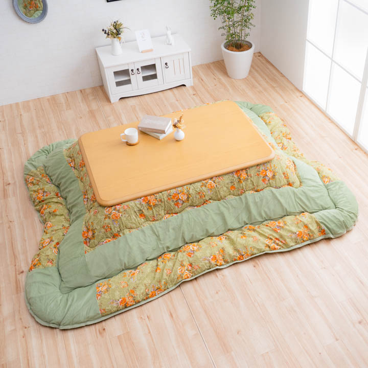 | 備考 | ■エレガンスなデザインが、高級感漂うこたつ布団。 ■表生地に施された光沢のあるベロア調の生地が、高級感を掻き立てます。。 ■ふっくらとしたボリューム感は、東レのマッシュロン綿を、国内で綿入加工をしている商品だからできる仕上がり。1枚1枚丁寧に仕上げた安心の品質です。 ■サイズ展開も大判4サイズと、とても豊富。家族団欒ができる大判サイズまで対応しています。 ■カラーはどんなお部屋にも合わせやすいグリーン色と、シックで落ち着いた印象のベージュ色の2色で、高級感のある仕上がりになっています。 廃盤:グリーン 205×205cm |