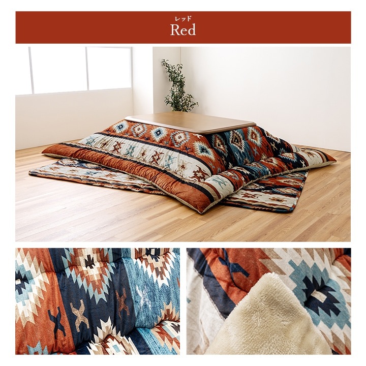 キリム柄 こたつ布団セット ロザン 掛け布団+敷布団 正方形 長方形